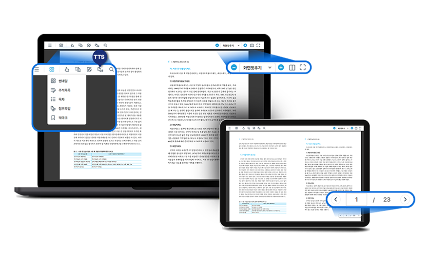 최적의 PDF 열람 환경을 제공하는 e-Book 형 PDF 전용 뷰어 솔루션입니다.